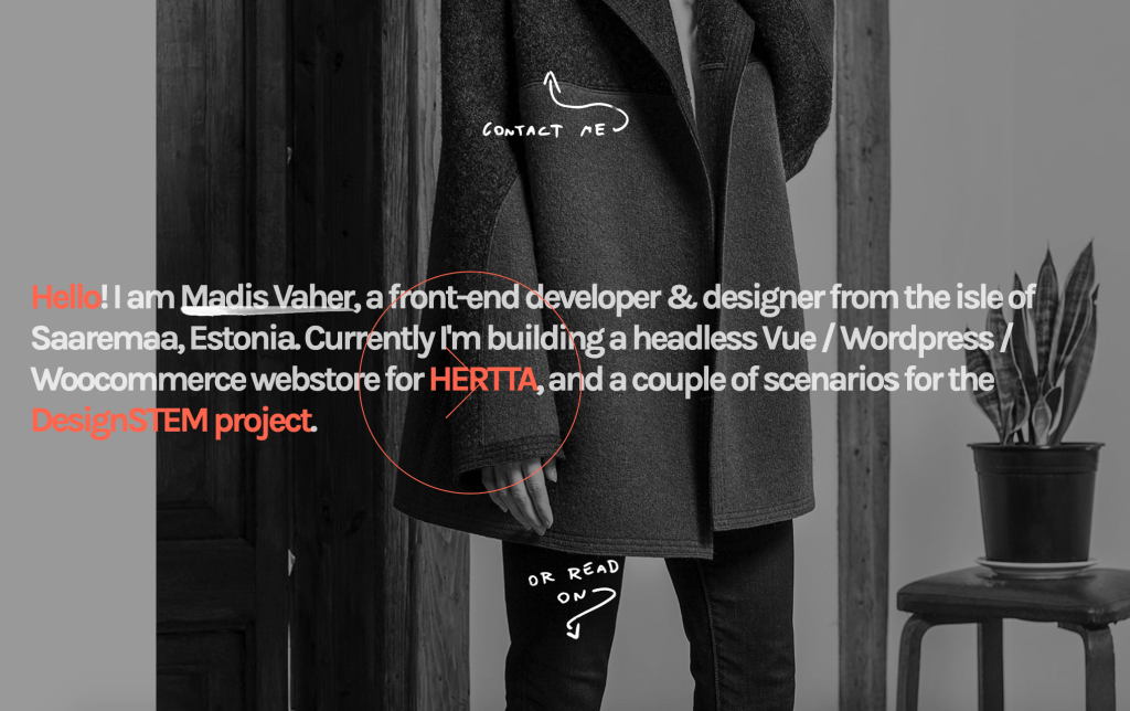 Esimesel lehel on ta selgitanud kes ta on, millega ta tegeleb, kust ta pärit on ja millised on ta hetkesed projektid.