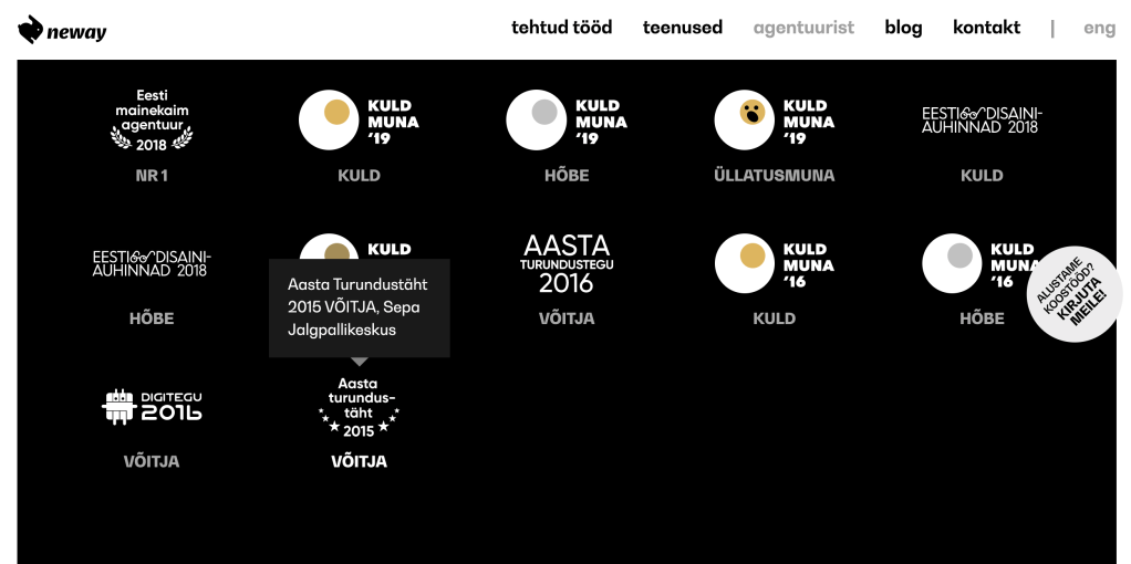 Kui sa lähed esilehel allapoole, siis ilmub sulle ette selline kast. Siit saab hea ülevaate, mis auhindu on antud agentuur võitnud ja millal ning lisaks sellele on ka väike selgitus juurde antud.