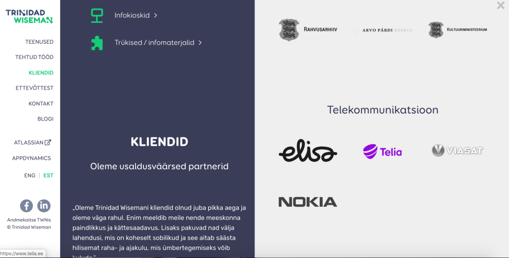 Trinidad Wiseman on kasutajakogemuse (UX) disaini, ärianalüüsi ja tarkvaraarenduse ettevõte, kes tegeleb keskmisest keerukamate teenuste ja infosüsteemide projekteerimise ja arendusega.